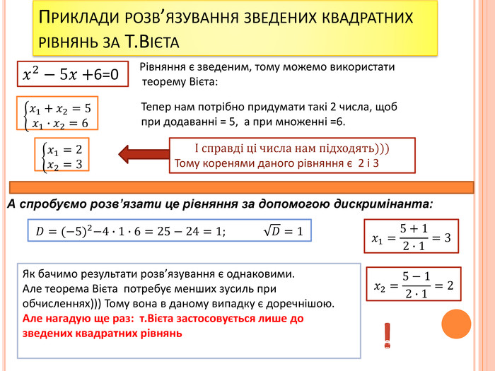 1. Повторити теорему Вієта та наслідки з неї, розглянути наведені приклади